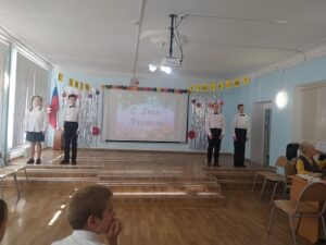 А начался день необычно — со встречи утром педагогов цветами и поздравлениями. А днём всех педагогов пригласили на праздничный концерт