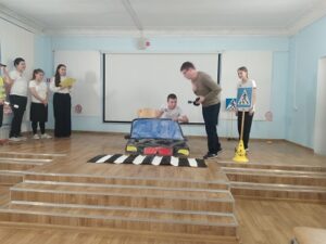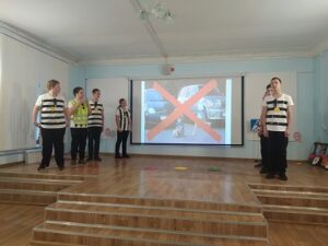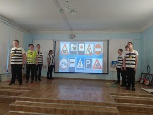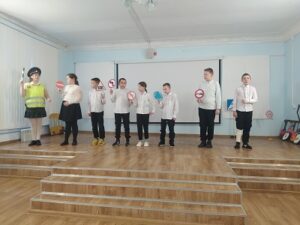 Продолжили выступления по правилам дорожного движения агитбригады учеников 5-9х классов. А начался конкурс с выступления инспектора ГИБДД. Надо сказать, что все выступления были яркими, красочными, содержательными с изюминкой!!! Ребята познакомились с дорожными знаками , рассказали стихи о них, спели песни и инсценировали некоторые правила, и даже познакомили с ними пришельцев с далёких планет. Выступление агитбригад были яркими и познавательными.