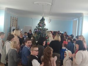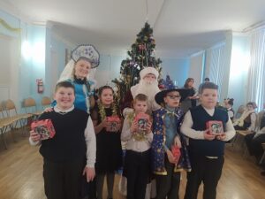 Сегодня в актовом зале прошла новогодняя ёлка для 1-4-х и 5б и 8б классов . Дети вместе со Снегурочкой и Дедом Морозом водили хороводы, пели песни, танцевали и читали стихи. Было очень весело. Дедушка МОРОЗ вручил каждому долгожданный подарок.